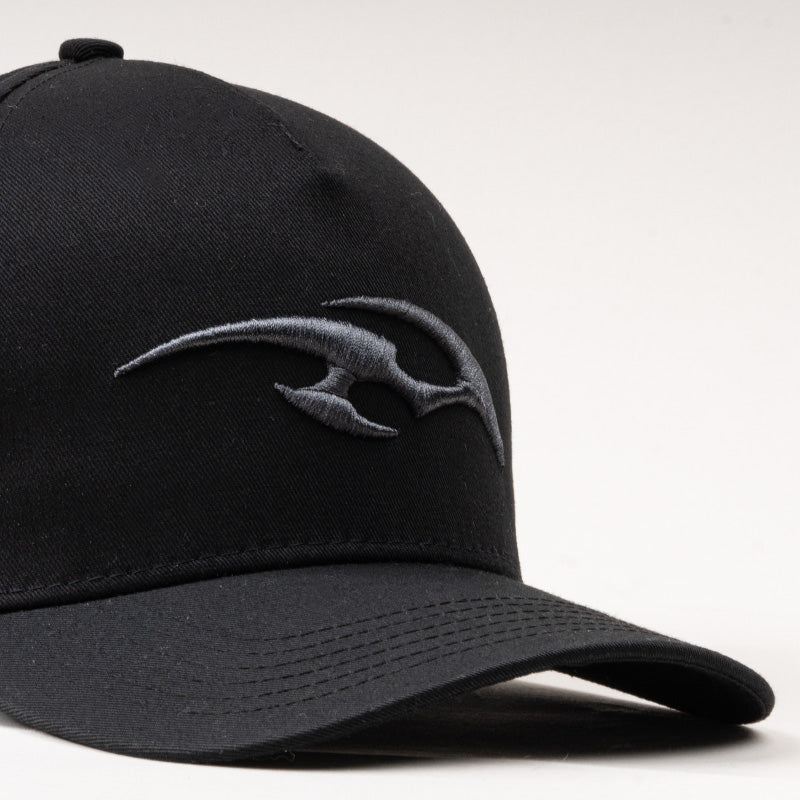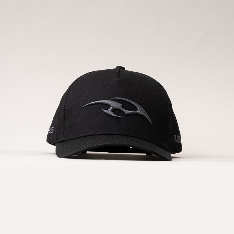 Gorra color negro total con visera negra total, un solo panel al frente, ajustador platico, snapback. Colección Trival. Gorra Conjunto para GYM.